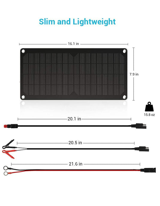 10 Watts Portable Solar Battery Charger Maintainer, Backup for Car Boat Marine Motorcycles Truck