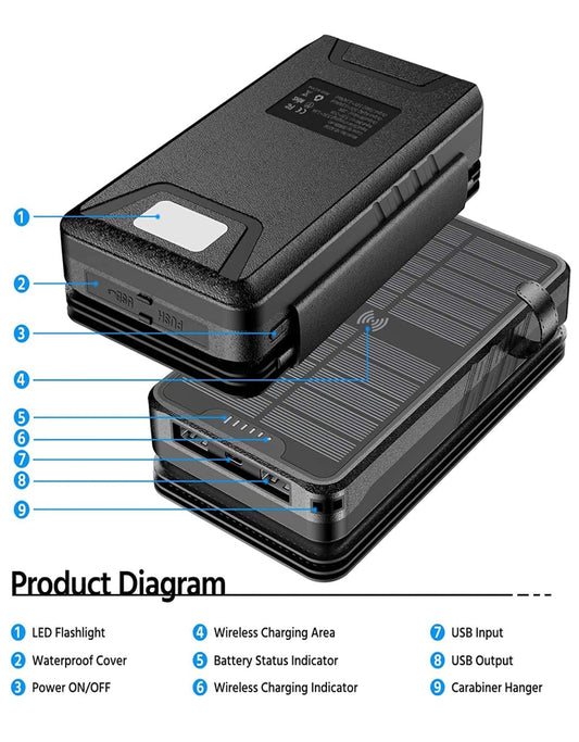 Solar Charger 38800mAh Solar Power Bank with Dual 5V3.1A Outputs 10W Qi Wireless Charger