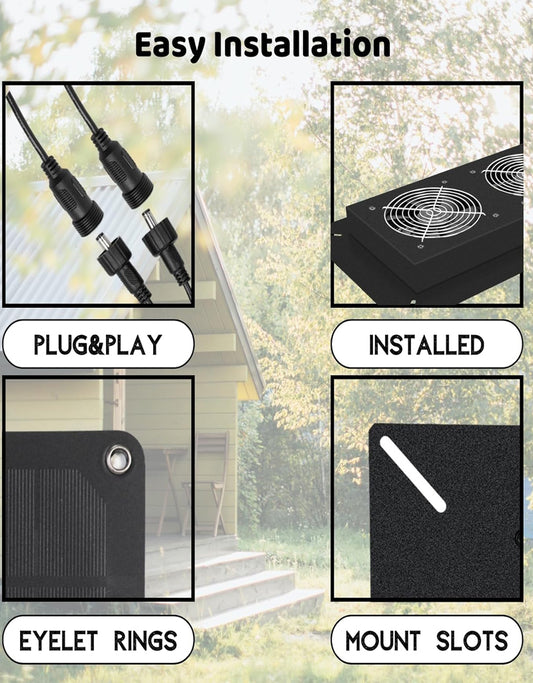 20W Solar Powered Dual Metal Shell Exhaust Fan Kit for Chicken Coops