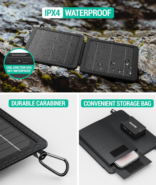 10W Portable Solar Charger(5V/2A Max), Small Foldable Solar Panel with USB-C USB-A Outputs