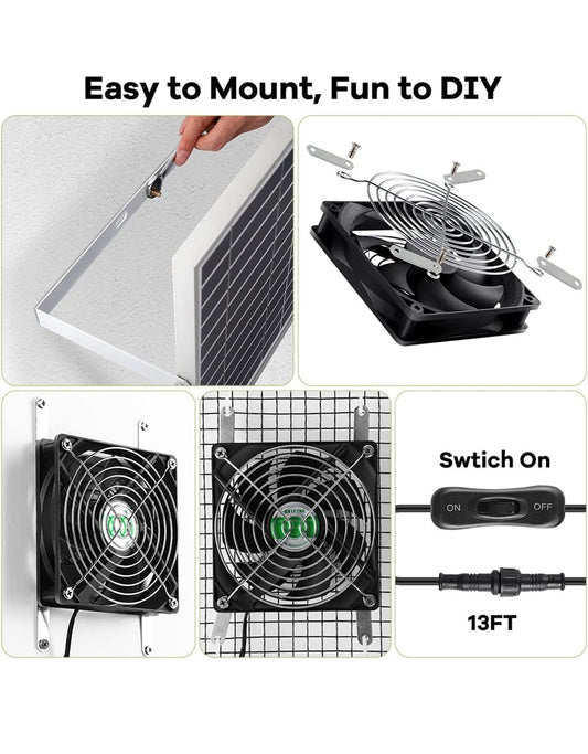 10W Solar Powered Fan, Solar Fan for Shed, Chicken Coop