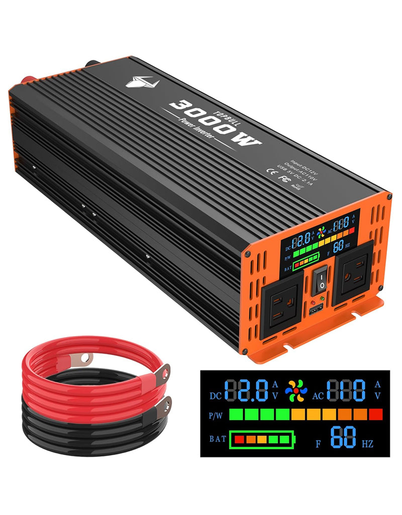 3000 Watt Power Inverter, Car/Outdoor 12V DC to 110V AC Converter, with LED Display