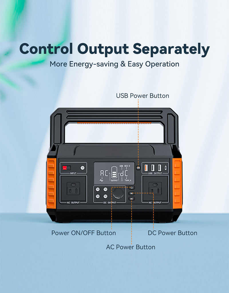 - 600W Huge Stable Output: portable power station with 600W Pure Sine Wave AC output(1200W surge), it enables most daily-use appliances (up to 600W) to operate. (the total of all combined devices < 600 watts)