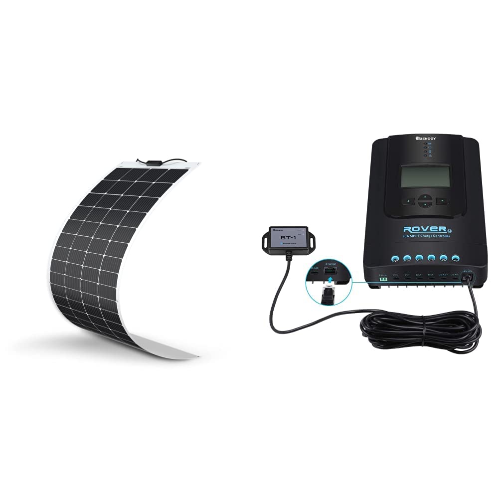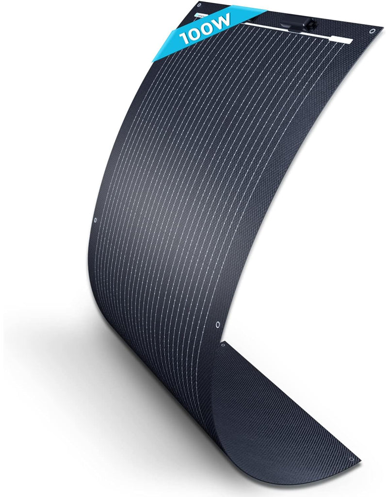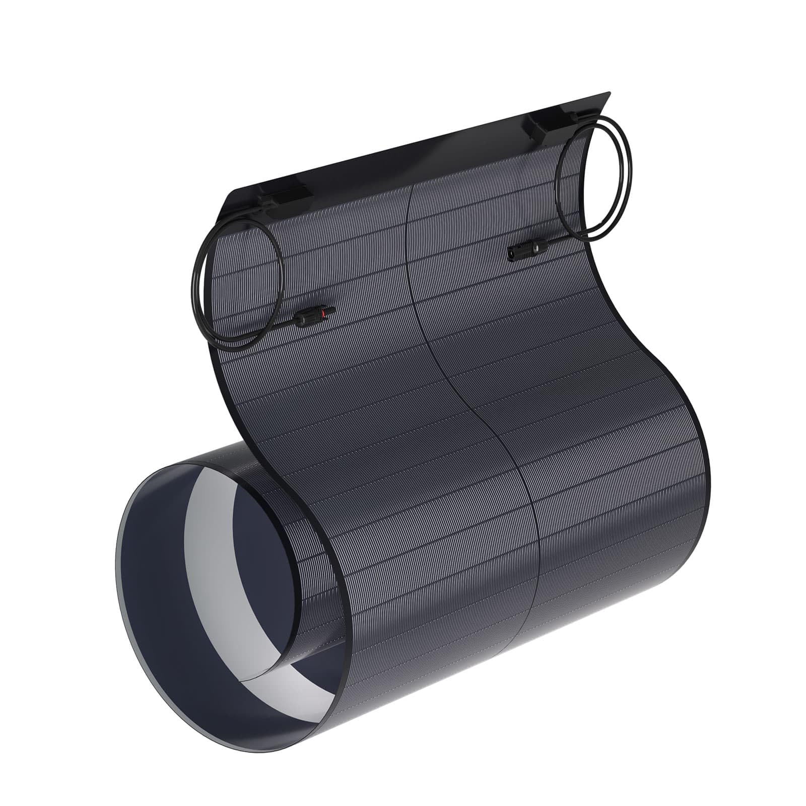 - [Easy to Transport, Carry and Install] The solar panel suits most curved surfaces as it is bendable within 240 degrees. It weighs only 1/3 of the rigid panel and presents an all-black glare-free appearance.
